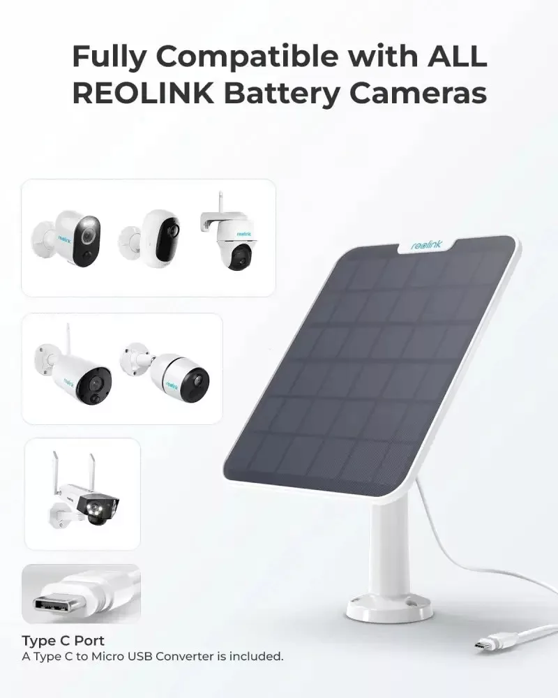 • Kompatibel mit Reolink Argus, Argus Pro, Argus 2, Argus PT und Reolink Go Kameras: Ideal als Ergänzung zu bestehenden Reolink Akkukameras.
